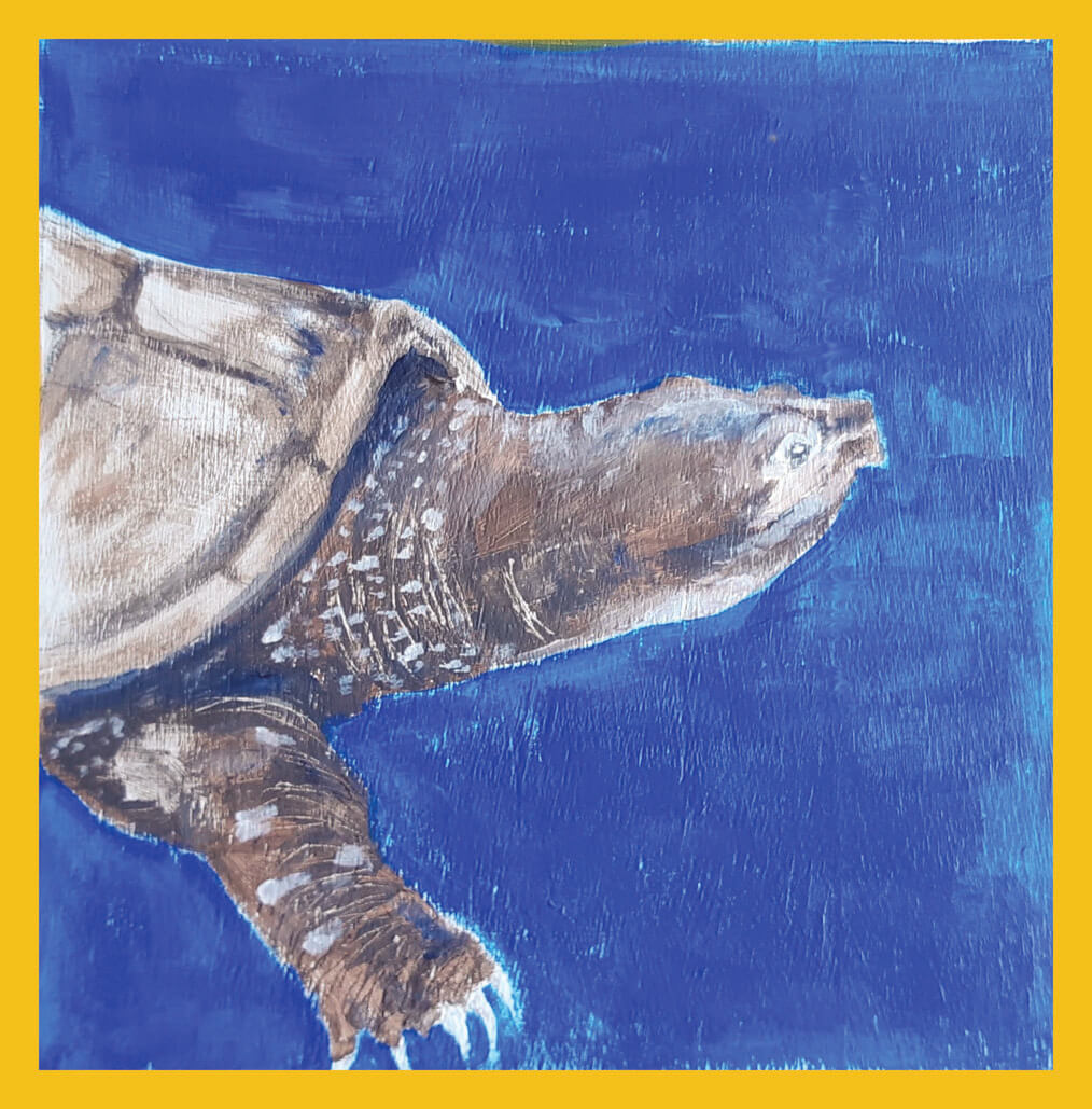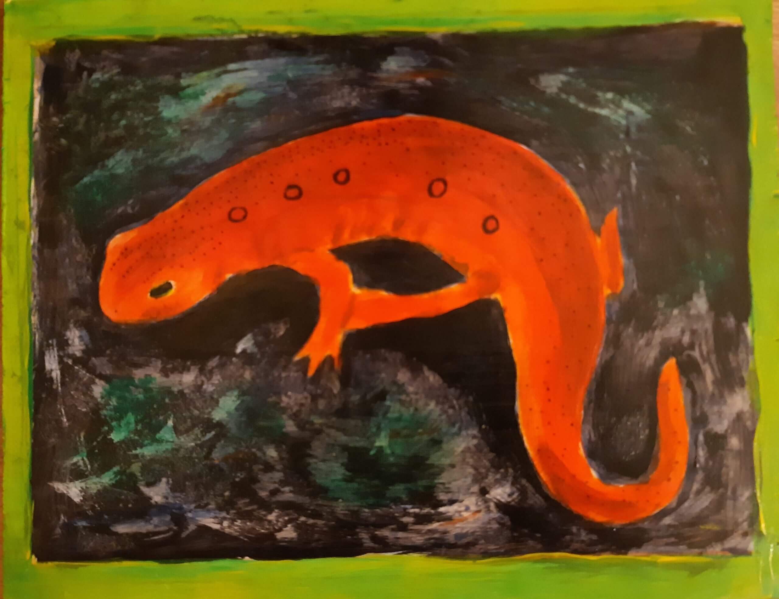 Occasionally I place paintings (acrylic on board) on nearby trails depicting creatures that I have seen on my walks. Here are a few of them: